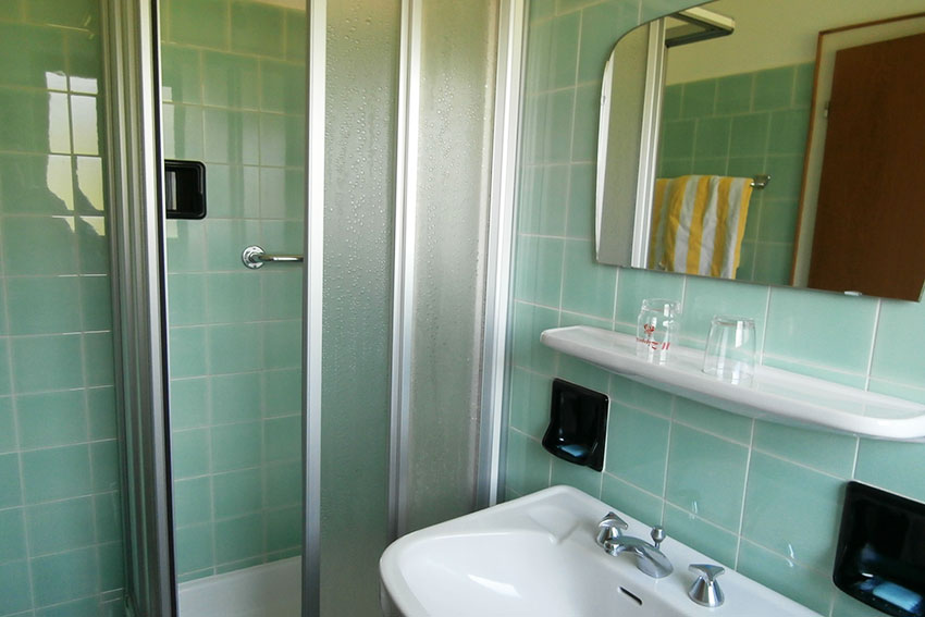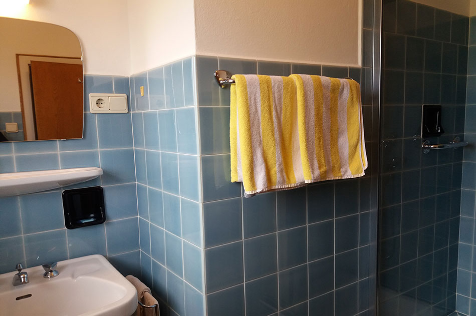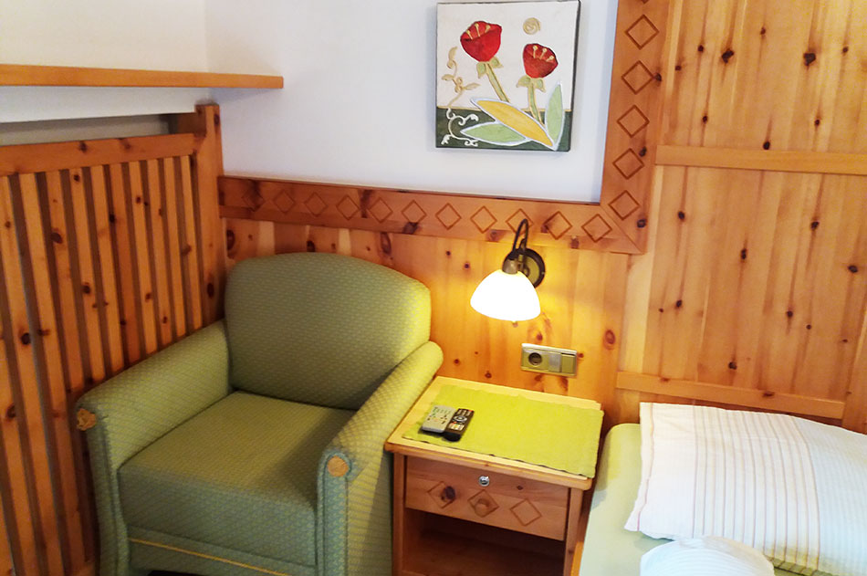 Camera da letto, doccia/WC, TV, salottino ad angolo, balcone con vista panoramica su Merano e dintorni