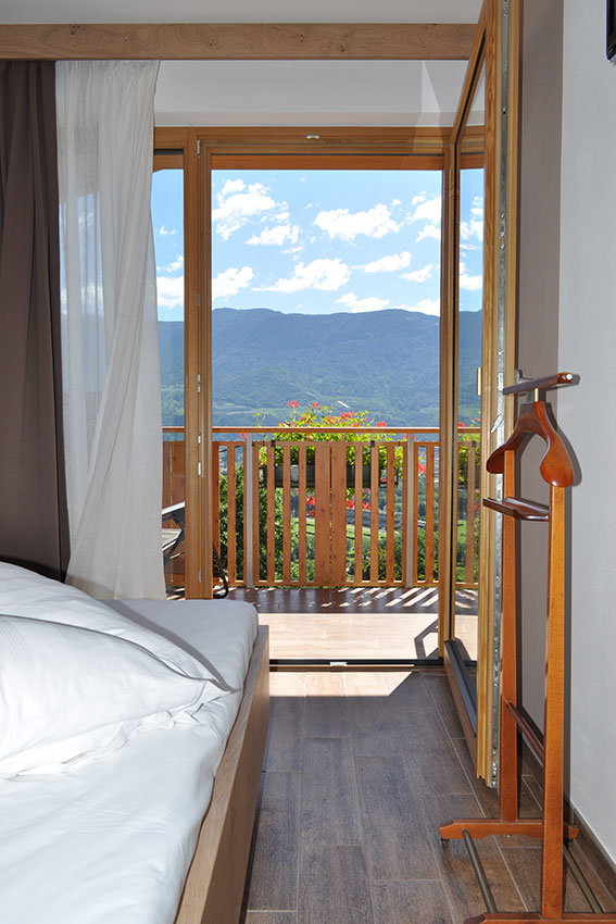 1 Schlafzimmer, 1 Bad, 1 Wohnzimmer mit ausziehbarer Schlafcouch, Kochecke, LCD-SAT-TV, Safe, Klimaanlage und Balkon mit Blick aufs Meraner Land